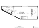 Byt se skládá z pokoje a z koupelny, kde je sprchový kout, umyvadlo, WC a topný žebřík.