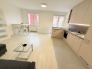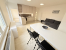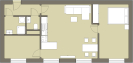 Byt tvoří prostorný obývací pokoj s kuchyňským koutem vybaveným moderní kuchyňskou linkou na míru, která je dominantou celého prostoru. Součástí je pohodlný gauč, jídelní stůl se čtyřmi židlemi a dostatek úložného prostoru.