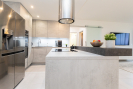 • otevřený obývací prostor s moderní kuchyní a ostrůvkem, integrovanou vinotékou a designovou digestoří