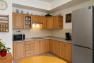 Dispozici tvoří prostorný obývací pokoj s kuchyňským koutem, ze kterého je přímý vstup na slunnou terasu se zahrádkou, dále ložnice a koupelna se sprchovým koutem a toaletou. Byt je prostorný, světlý a s výbornou energetickou náročností třídy B a nízkými provozními náklady.