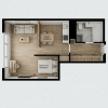Dispozice bytu je prakticky rozdělená příčkou, která přirozeně odděluje obývací a spací zónu. Byt působí vzdušně a nabízí komfortní městské bydlení.