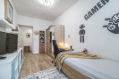 Dispozice 3+1 nabízí praktické rozdělení prostoru pro rodinu, pár i jednotlivce, kteří preferují dostatek místa pro práci či volnočasové aktivity. Obývací pokoj je prostorný a světlý, kuchyň je samostatná a dobře řešená. Ložnice i další pokoj umožňují variabilní využití jako dětský pokoj, pracovna nebo pokoj pro hosty. Celkově byt působí velmi moderním a příjemným dojmem.