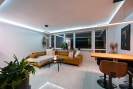 Unikátním prvkem jsou designově podsvícené stropy ve všech místnostech, které dodávají interiéru výjimečnou atmosféru a podtrhují jeho exkluzivitu.