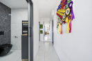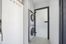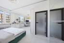 Další nadstandard představují elektricky ovládané vstupní dveře s možností dálkového ovládání i řízení přes mobilní aplikaci. Byt je navíc částečně vybaven prvky chytré domácnosti, které zvyšují komfort a praktičnost každodenního bydlení.