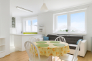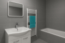 Je tu obývací pokoj s kuchyňským a jídelním koutem 24,3m2, ložnice 12m2, další pokoj 11,1m2, koupelna 3,7m2, samostatné WC 0,9m2 a chodba 5,1m2.