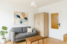 Vytápění zajišťuje elektřina a také krásná kachlová kamna, která dodávají bytu velmi příjemnou a jedinečnou atmosféru.