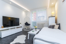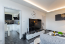 Dispozičně je byt velmi prakticky řešený - ze vstupní chodby se dostanete do čtyř samostatných pokojů, díky tomu má každý člen domácnosti dostatek soukromí. Z obývacího pokoje je následně vstup do kuchyně.