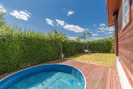 Upravený, mírně svažitý pozemek je oplocený s jižní orientací. Na pozemku se nachází kruhový bazén s čerpadlem a s filtrací.