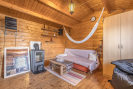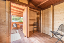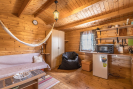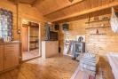 Dřevěná chata s kamenným základem je částečně podsklepená, skládá se z jedné obytné místnosti, uzavřené verandy a venkovní zastřešené verandy s posezením, která byla přistavěna v r. 2024. Nabízí celkovou užitnou plochu cca 30 m2.