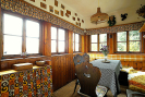 Připojeno na elektřinu, topení kamny na dřevo.