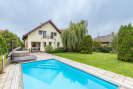 Pozemek o výměře 778 m2 nabízí upravenou zahradu s plně vzrostlou zelení, krytý bazénem se slanou vodou, protiproudem a tepelným čerpadlem a samozřejmě zahradní domek. Vjezd na pozemek zajišťuje elektrická brána na dálkové ovládání, parkování je možné přímo na pozemku.