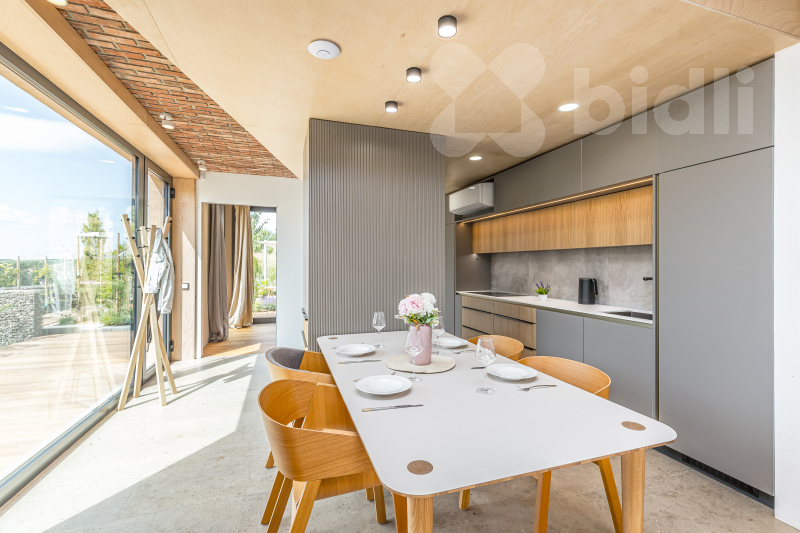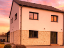 Velkou předností domu je velmi úsporný provoz a energetický štítek B. Vytápění je příjemné podlahové, řešené pomocí tepelného čerpadla. Cirkulaci vzduchu navíc podporuje rekuperace.