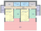 V horní části domu (1. NP a podkroví) jsou situovány dva samostatné mezonetové byty, z nichž každý má plochu cca 130 m2 včetně balkonu a teras.