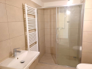 Dále se z předsíně vstupuje do koupelny se sprchovým koutem, toaletou a umyvadlem, zařízené keramikou v přírodních nadčasových tónech.