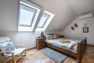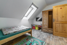 První patro je pak koncipováno jako klidová zóna se čtyřmi samostatnými pokoji a druhou koupelnou a samostatnou toaletou.