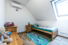 Výjimečnou přidanou hodnotou této nemovitosti je prostorná dvougaráž o rozloze 50 m², která disponuje vlastní půdou. Společně s půdním prostorem nad samotným domem tak nemovitost nabízí nadstandardní množství úložných prostor. Dům je vybaven špičkovými technologiemi, které zajišťují minimální provozní náklady a maximální komfort. O vytápění se stará tepelné čerpadlo napojené na podlahové topení v celém domě, zatímco o energetickou soběstačnost se opírá fotovoltaická elektrárna o výkonu 10 kWp s bateriovým úložištěm. Příjemné klima v letních měsících zajišťuje klimatizace v každém pokoji a o bezpečí vaší rodiny se stará systém Jablotron spolu s kamerovým systémem.