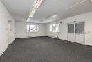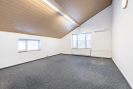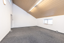 Horní podlaží je rozděleno do tří samostatných místností o velikosti 14 m2 se vstupem na terasu, 33 m2 a 36 m2. Dále je zde k dispozici sklad, kuchyňka a koupelna s WC. Na toto patro navazuje terasa o přibližné výměře 18 m2, která může sloužit jako příjemné místo pro přestávky zaměstnanců nebo neformální pracovní setkání.