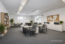 Přízemí tvoří dvě velkorysé kancelářské místnosti o rozloze 51 m2 a 32 m2, které doplňuje kuchyňka, koupelna s WC, samostatný sklad a serverovna. Dispozice nabízí praktické zázemí pro každodenní chod firmy a dostatek prostoru jak pro pracovní místa, tak technické vybavení.