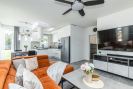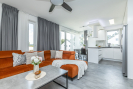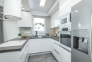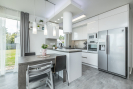 - prostorný obývací pokoj s krbovými kamny a plně vybavenou kuchyní (včetně vestavěných spotřebičů)