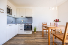 Apartmán sestává ze: zádveří 6,40 m2, obývací pokoj + kk 19,70 m2, koupelna + WC 5,30 m2, pokoj 15,80 m2, terasa 16,8 m2, venkovní kóje.