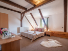 Nad budovou s boxovým stáním pro 24 koní, sklady a sedlárnou, poskytuje nástavba se třemi apartmány další ubytování pro 12 osob, zázemí s kanceláří, dílnou a garáží. Hned vedle umístěná stavba slouží pro uskladnění strojů, krmiva a podestýlky.