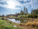 Na pozemku je k dispozici venkovní jízdárna, oplocená obora s hodnotnými stromy, dančí zvěří a tůň s napajedlem. Atmosféru dokresluje vlastní rybník 1500 m2 s dřevěnou rozhlednou, vybudovaný s dokonale vyváženou skladbou použitých rostlin a kamenných obkladů. Úžasný výhled do půvabného okolí si můžete užívat v naprostém soukromí.