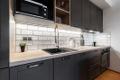 Byt se nachází ve 2. patře bytového domu s výtahem a je plně vybaven. Součástí je kvalitní kuchyňská linka značky Sykora, dále elektrické rolety se senzorem otevření oken a chytrá domácnost, která umožňuje ovládání teploty a osvětlení na dálku přes mobilní aplikaci.