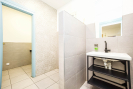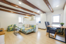 Tato část domu má samostatný vstup. Byt nabízí koupelnu se sprchovým koutem s prostorem pro pračku, samostatný pokoj vhodný jako ložnice či dětský pokoj a světlý obývací pokoj s kuchyňským koutem, který je prakticky oddělen kuchyňským pultem.