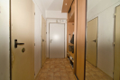 Byt zaujme praktickým řešením a komfortními prvky: ve vstupní chodbě je vestavěná šatní skříň doplněná o botník a věšáky, takže úložné místo máte vyřešené hned od dveří. Kuchyňská linka je starší, ale zachovalá, vaření je řešeno plynovým sporákem. Jádro je částečně umakartové a částečně zděné, přičemž je obložené keramickým obkladem.