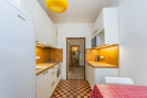 Dispozičně je byt řešen jako vstupní hala (10,83 m2) navazující na centrální chodbu (6,53 m2). Obývací pokoj má výměru 21,16 m2, ložnice 16,44 m2. Kuchyně o velikosti 7,92 m2 je vybavena novou kuchyňskou linkou a doplněna samostatnou špíží (0,72 m2). Koupelna má 3,29 m2 a samostatné WC 1,42 m2. Byt disponuje dřevěnými okny s dvojsklem, dřevěnými parketami v obytných místnostech a dlažbou. K bytu dále patří sklepní koje umístěná v suterénu domu.