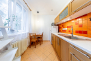 Byt je prakticky řešený - nabízí samostatnou kuchyň, dva pokoje, koupelnu a samostatné WC. Velkou výhodou je komora přímo v bytě, která poskytuje ideální místo pro uložení potravin či domácích potřeb.