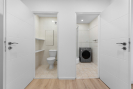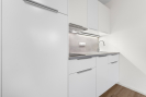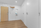 Interiér je zařízen převážně v bílé barvě, což prostoru dodává čistý, vzdušný a velmi příjemný dojem. Dispozice bytu se skládá z obývacího pokoje s kuchyňským koutem, ložnice, vstupní chodby, koupelny a samostatné toalety. Velká plastová okna jsou osazena žaluziemi a zajišťují dostatek denního světla v obou pokojích.