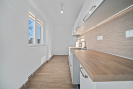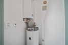 Velkou výhodou je také to, že obývací pokoj lze v případě potřeby jednoduše znovu rozdělit příčkou na dvě samostatné místnosti - např. obývací a dětský pokoj, jak tomu bylo původně. Vytápění bytu je řešeno pomocí nového elektrokotle, ohřev vody zajišťuje bojler.