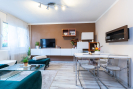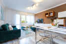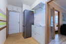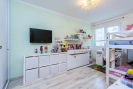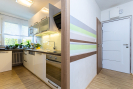 Byt disponuje moderní kuchyní s vestavěnými spotřebiči, obývacím pokojem se vstupem na balkon, ložnicí, dětským pokojem, předsíní s vestavěnou skříní a koupelnou s rohovou vanou a toaletou. Byt se prodává částečně vybavený.