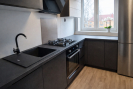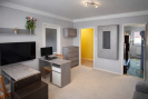 Dispozice bytu je prakticky řešena. Ze vstupní chodby je samostatný vstup do koupelny a na WC, dále do kuchyně a obývacího pokoje. Z obývacího pokoje je vstup do dalšího pokoje. Menší pokoj je průchozí jak z kuchyně, tak z obývacího pokoje, což nabízí variabilní využití prostoru například jako dětský pokoj, pracovna nebo šatna.
