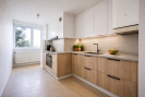Dispozice bytu nabízí možnost vytvoření moderního otevřeného prostoru, například propojením kuchyně s obývacím pokojem.