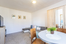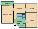 Dispozice bytu zahrnuje prostorný obývací pokoj se vstupem na balkon, kuchyň a dvě ložnice. Koupelna a WC jsou oddělené, na chodbě se nachází také praktická komora. Rodiny s dětmi jistě ocení dobře řešenou návaznost jednotlivých místností. Byt je určen ke kompletní rekonstrukci, což umožňuje novým majitelům přizpůsobit si ho vlastním představám. Vytápění je řešeno ústředně pomocí elektrického kotle umístěného v bytě.