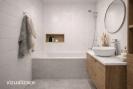 Při rekonstrukci je možnost propojení kuchyně s obývacím pokojem, rozšíření koupelny apod.