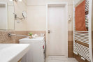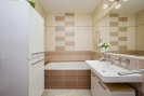 Koupelna (5,1m2), samostatné WC (1,8m2) a vstupní chodba (14,9m2) s vestavěnými skříněmi nabízejí dostatek úložného prostoru.
