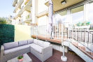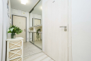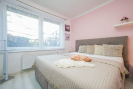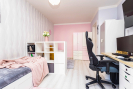 Dvě ložnice (16,1 a 11,3m2) orientované na sever se vstupem z jedné z nich na terasu o velikosti 5 m2 a na 14 m2 předzahrádku směřující do klidného vnitrobloku se zelení, což zajišťuje stabilní teplotu a klidný spánek i během letních měsíců.