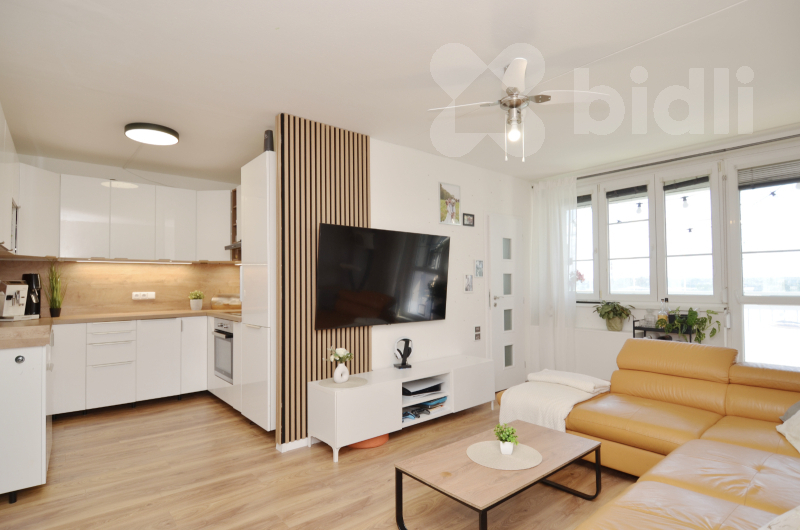 Byt se nachází ve 3. patře čtyřpodlažního panelového domu, pouze se dvěma byty na každém podlaží. Budova není podsklepena a nedisponuje výtahem. Bytová jednotka 4+kk je příčně východo - západně prosvětlena. Disponuje lodžií situovanou, pro letní měsíce výhodně - východním směrem. Její celková plocha činí 104 m2. K bytu dále náleží komora o ploše 5 m2 umístěná na stejném podlaží budovy. Dispozice je tvořena 3 neprůchozími pokoji, obývacím pokojem s kuchyňským koutem, koupelnou s WC a dále v souladu s platnou obytnou normou, samostatným WC. Aktuálně byt slouží pro dvougenerační bydlení rodiny stávajícího vlastníka. S ohledem na velkorysý a dobře prosvětlený prostor je byt vhodný k mnoha úpravám.