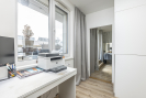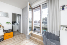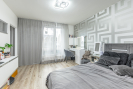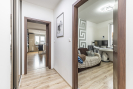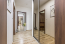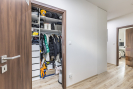 Dispozice bytu je prakticky řešena s důrazem na oddělení denní a klidové části. Dominantou je obývací pokoj s kuchyňským koutem o velikosti 29,23 m2 s přímým vstupem na prostornou terasu. Ložnice má výměru 13,35 m², další pokoje 15,89 m2 a 9,95 m2. Koupelna disponuje plochou 3,39 m2, samostatné WC 1,41 m2. Komfort užívání doplňuje prostorná chodba 14,43 m2 a praktická komora 3,85 m2 přímo v bytě. Byt se nachází v posledním podlaží, což zajišťuje větší míru soukromí a klidné bydlení.