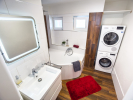 Součástí bytu je moderně vybavená kuchyňská linka propojená s velkorysým obývacím prostorem, koupelna s vanou, samostatné WC a lodžie o velikosti 2,55 m2. Plovoucí a vinylové podlahy dodávají interiéru moderní a elegantní vzhled. Významným benefitem je také vlastní malá zahrádka - ideální k relaxaci, i garáž vhodná pro motorku nebo kola, která je součástí prodeje.