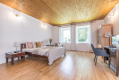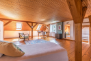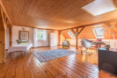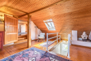 Z hlavní předsíně vedou dřevěné schody do podkroví, kde se nachází prostorná hala (29,5 m2) a pokoj (59 m2) s vestavěnými úložnými prostory. Součástí podkroví je ještě půda (66,5 m2), jež nabízí možnost vytvoření dalšího obytného prostoru.