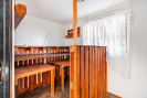 Chata s verandou má dvě místnosti - hlavní prostor je ideální pro odpočinek a přespání, menší místnost lze využít pro osazení kuchyňské linky a nachází se zde také vstup do sklepa.