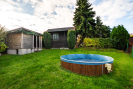 Zahrada je osázena vzrostlými ovocnými a okrasnými dřevinami, které poskytují příjemné soukromí. Nachází se zde také bazén.