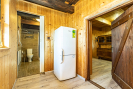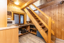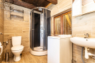 Interiér srubu tvoří útulný obývací pokoj, ložnice a kuchyňský kout. Koupelna je vybavena sprchovým koutem, toaletou a bojlerem pro ohřev vody. Pro tepelný komfort v chladnějších měsících jsou v celém objektu osazena plastová okna. Vytápění spolehlivě zajišťují kamna na dřevo, která srubu dodávají tu správnou atmosféru, doplněná o elektrické přímotopy. Srub je ve velmi dobrém technickém stavu, zastřešen sedlovou střechou s pálenou taškou a připraven k okamžitému užívání. Technické napojení zahrnuje obecní vodovod, elektřinu a vlastní čističku odpadních vod.