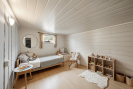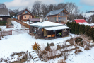Uvnitř to není o okázalosti, ale o pohodě. Elektřina je samozřejmá, takže ranní kafe není survival, a večer se o atmosféru postará krb - ten typ tepla, který voní dřevem a dělá z obyčejné soboty malý svátek. A teď "nedostatek", který je ve skutečnosti tajná výhoda: není tu zavedená voda. Díky tomu se vám nestane klasické chatové drama typu "v lednu prasklo potrubí, jedeme". Pitnou vodu si přivezete v kanystrech, zalévání vyřeší malá studna a vy místo oprav řešíte jen to podstatné: jestli půjdete na procházku, k vodě, nebo si dáte další kapitolu a už se nikam nepohnete.