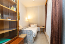 Patro: tři ložnice, ze kterých je přístup na dlouhý nezasklený balkón s výhledem do okolí.
