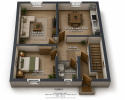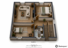 Dispozici domu tvoří v přízemí vstupní chodba, kuchyně, obývací pokoj, ložnice a samostatné WC. Do patra vedou schody z chodby, kde se nachází koupelna s vanou, ložnice, obývací pokoj, samostatný pokoj, vstup na balkon a prostornou půdu. Dům je podsklepen.